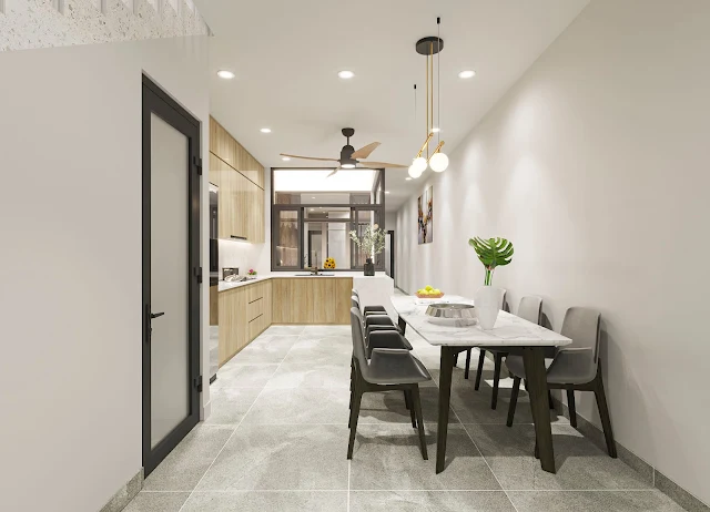 Ngôi nhà có kết nối không gian độc đáo qua thiết kế mở. Phá bỏ các bức tường ngăn phòng, tạo điều kiện cho gió và ánh sáng dễ dàng "len lỏi" mọi khu vực.